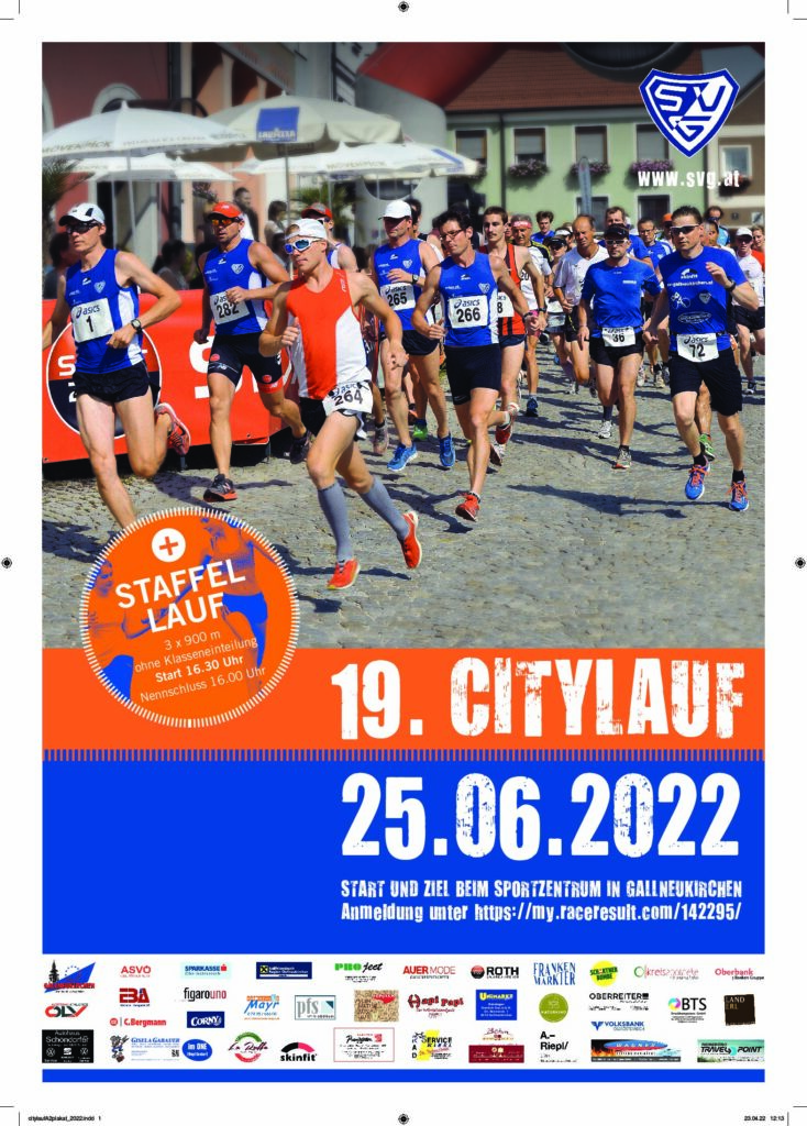 19. Citylauf Gallneukirchen 25.06.2022 posted by Oliver Kreindl 29. April 2022 Anmeldung unter https://my.raceresult.com/142295/