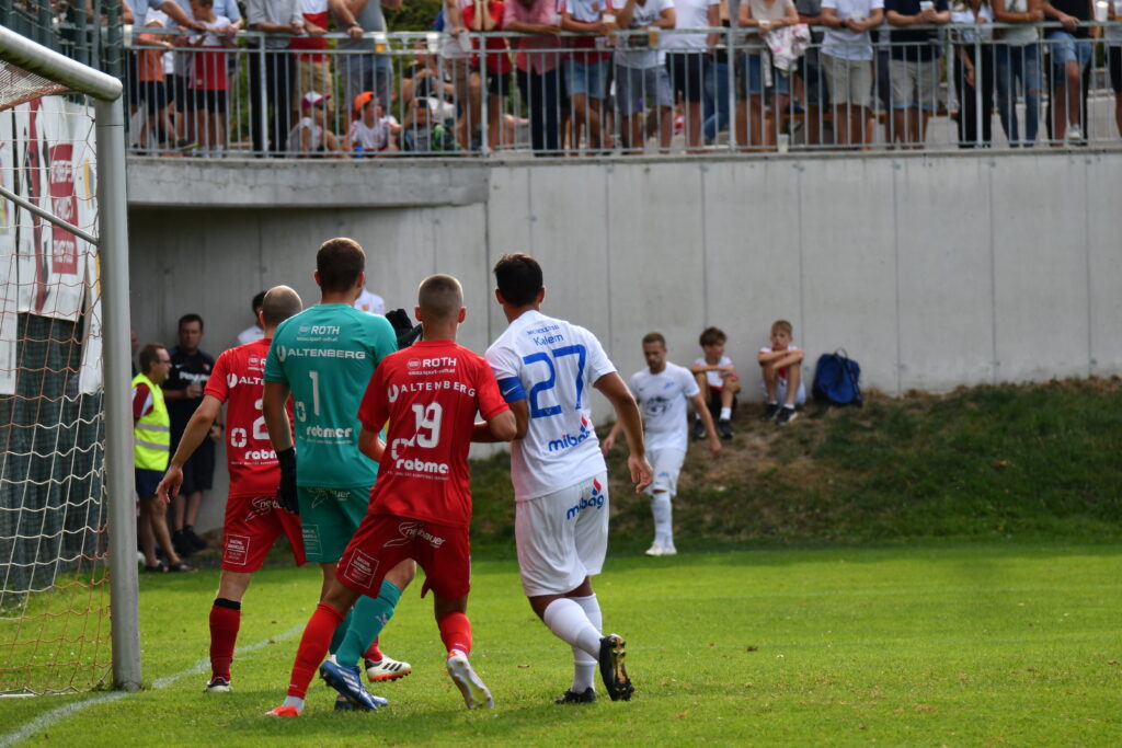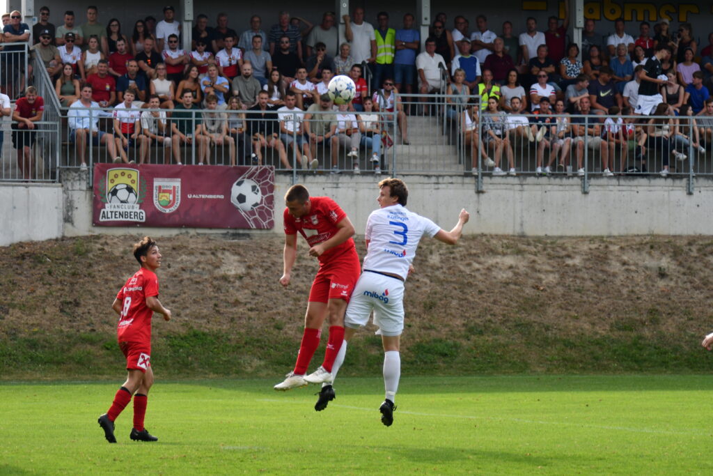 Sieben Minuten später verwertete Feichtinger eine Hereingabe mustergültig und erzielte den verdienten Ausgleich. In der 83. Spielminute wurde es erneut hektisch. Nach einem Ausflug von Schlussmann Kürnsteiner, konnte dieser den Altenberger nur noch mit einem Foul stoppen, was der Unparteiische mit „Rot“ ahndete.