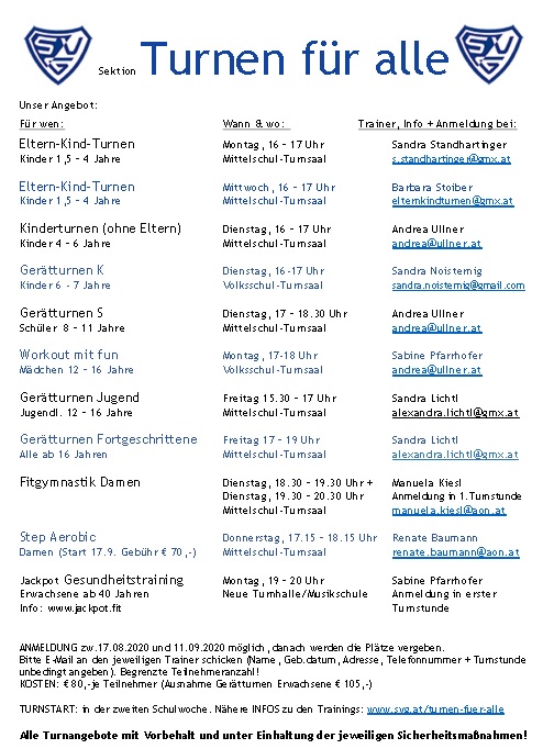 Die neuen Kurse der Sektion „Turnen für alle“ sind da!