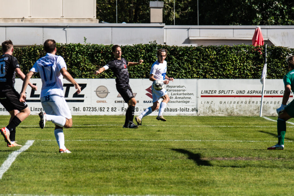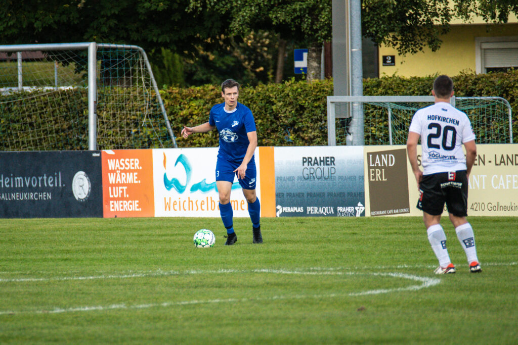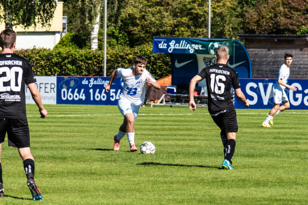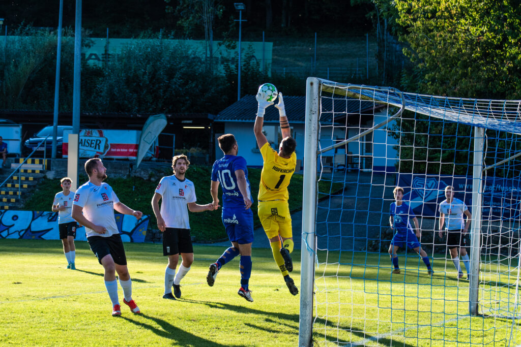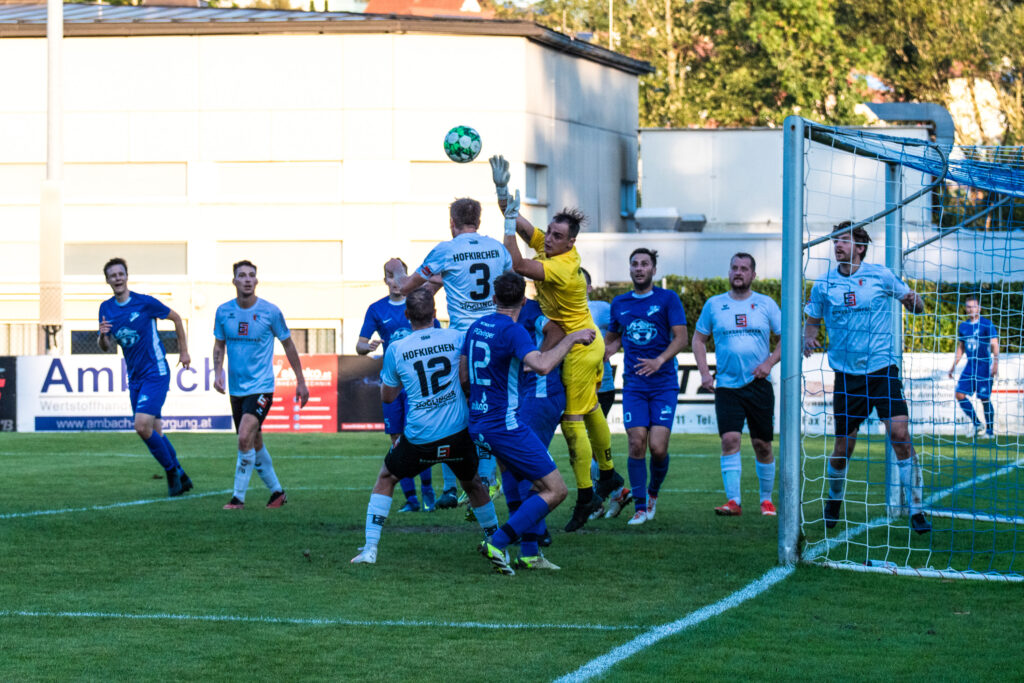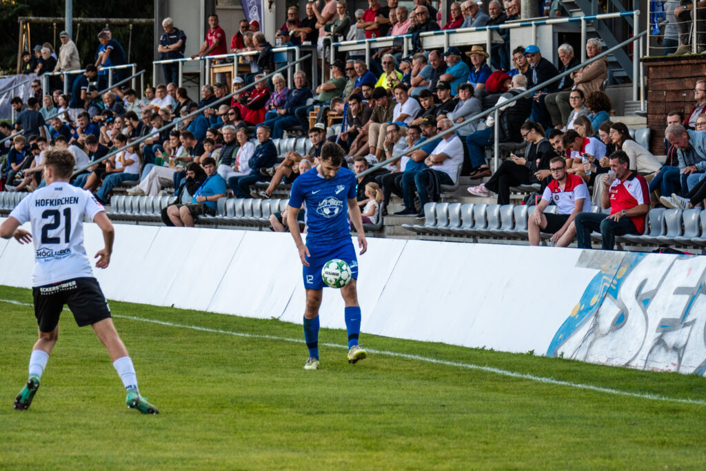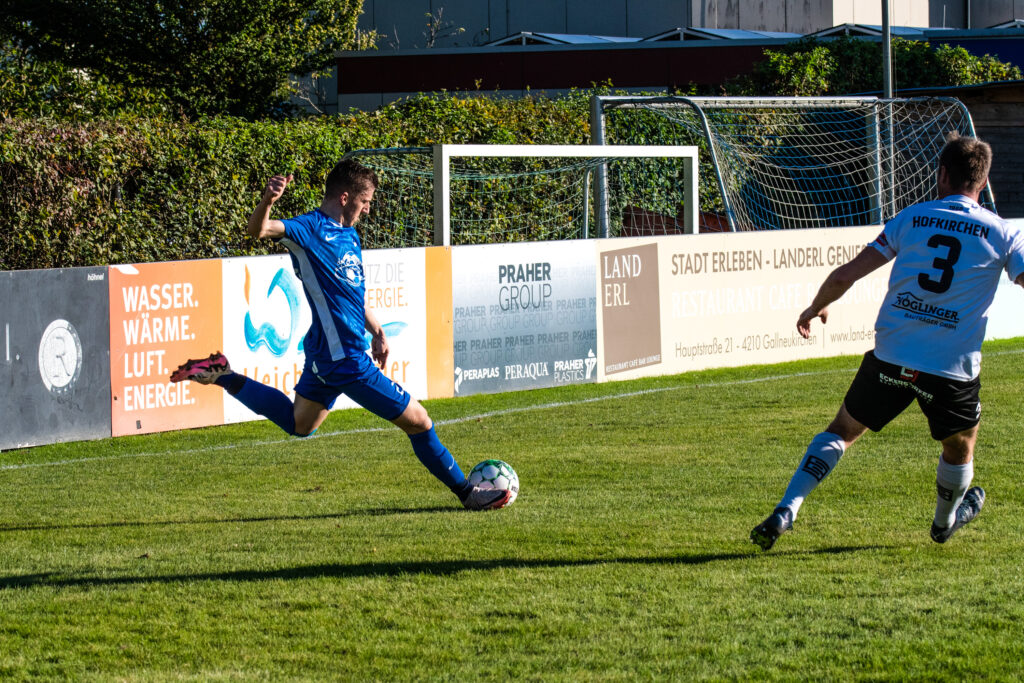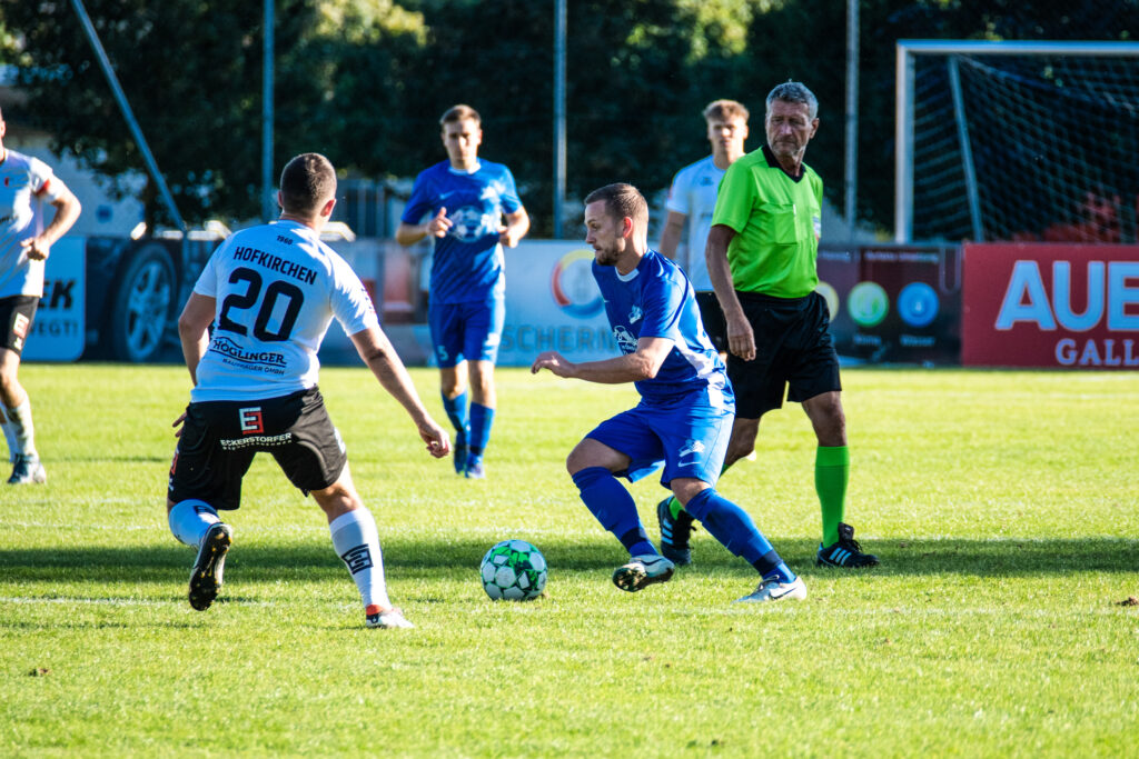 Bereits in der 15. Minute ergab sich eine große Chance, als der Gästetorhüter eine Flanke von Gabauer nicht festhalten konnte. Thomas Gangl setzte nach, köpfte jedoch knapp über das Tor. Auch in der 32. Minute blieb uns der Torerfolg zunächst verwehrt: Mathias Feichtinger scheiterte freistehend am herausstürmenden Torhüter, und den Nachschuss von Gangl konnte die Hofkirchner Abwehr im letzten Moment über die Querlatte lenken.
