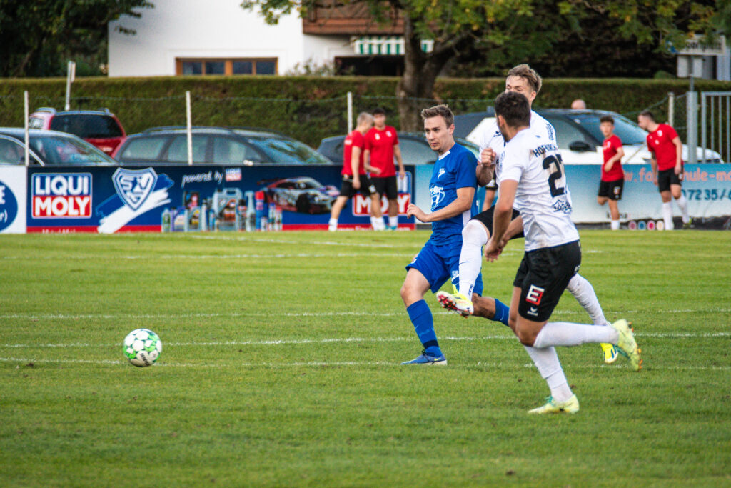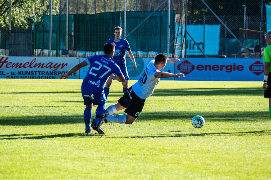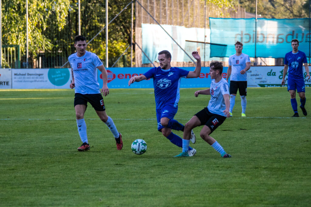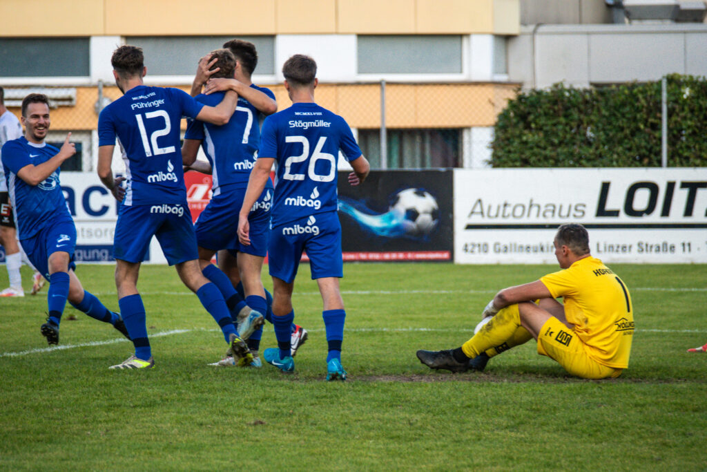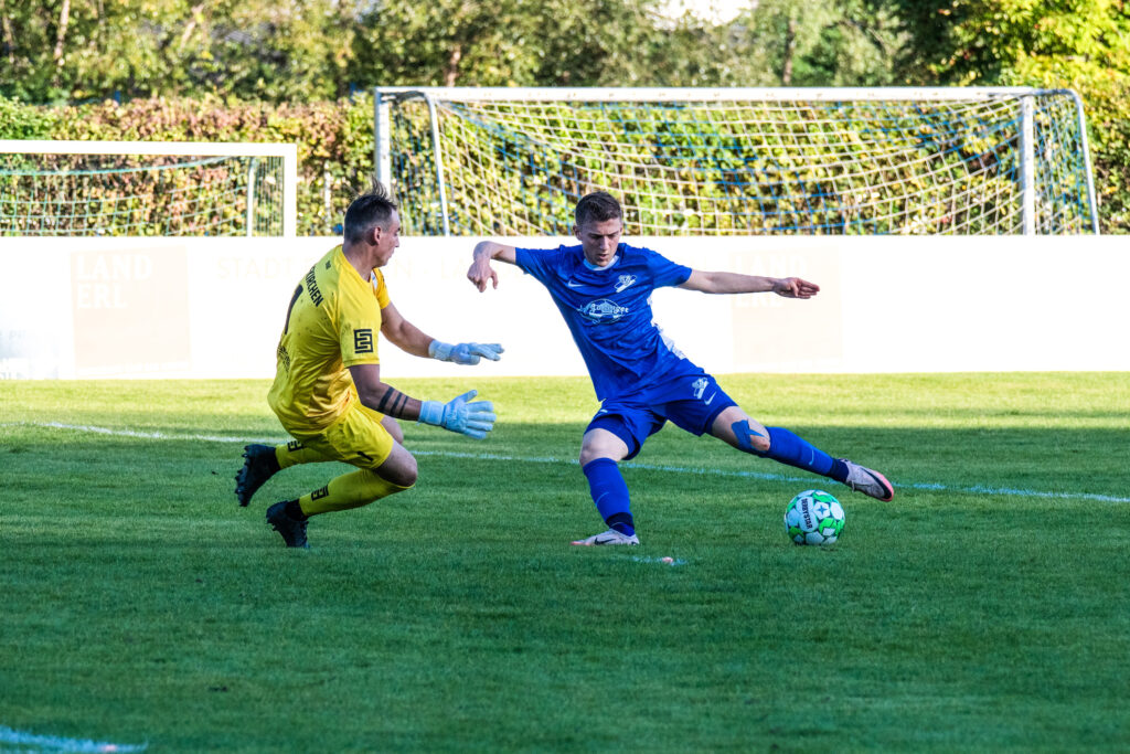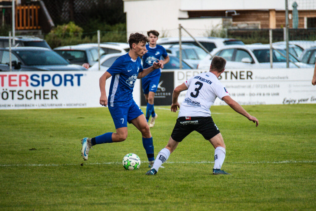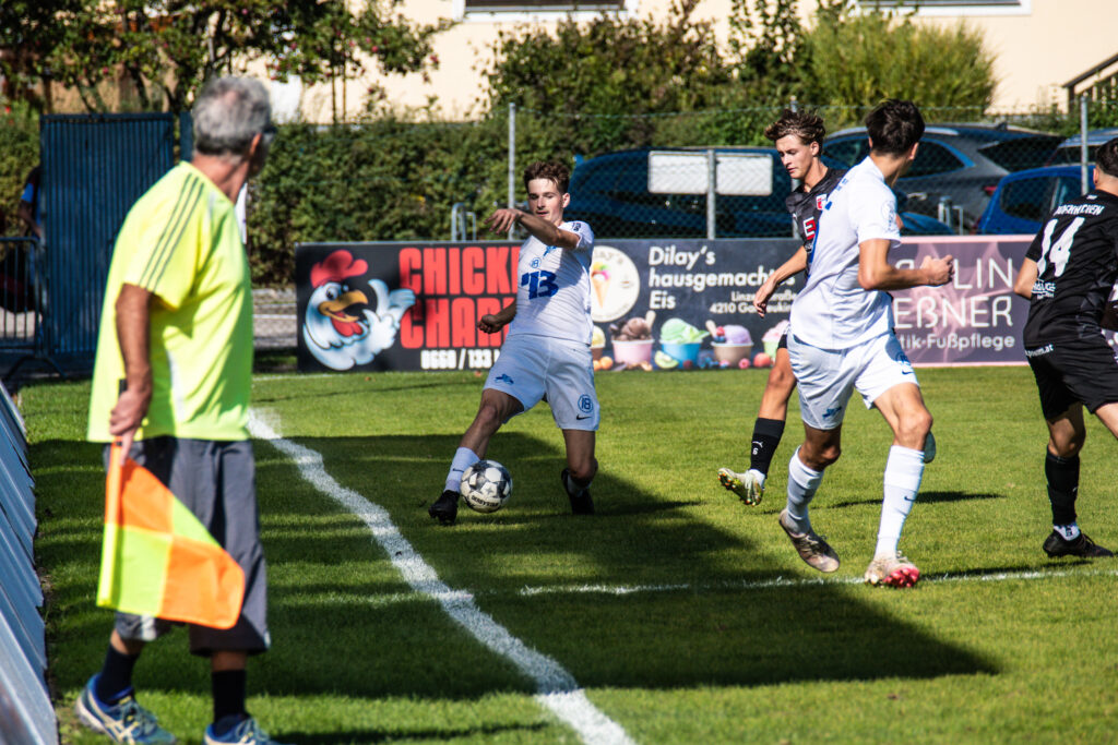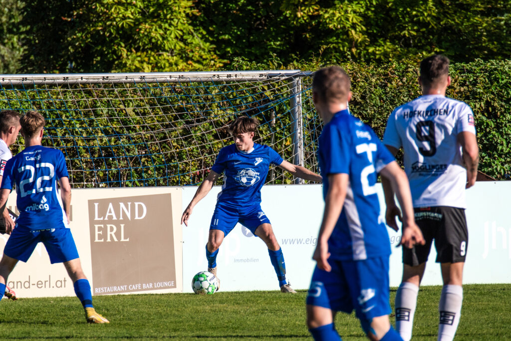 Bereits in der 15. Minute ergab sich eine große Chance, als der Gästetorhüter eine Flanke von Gabauer nicht festhalten konnte. Thomas Gangl setzte nach, köpfte jedoch knapp über das Tor. Auch in der 32. Minute blieb uns der Torerfolg zunächst verwehrt: Mathias Feichtinger scheiterte freistehend am herausstürmenden Torhüter, und den Nachschuss von Gangl konnte die Hofkirchner Abwehr im letzten Moment über die Querlatte lenken.