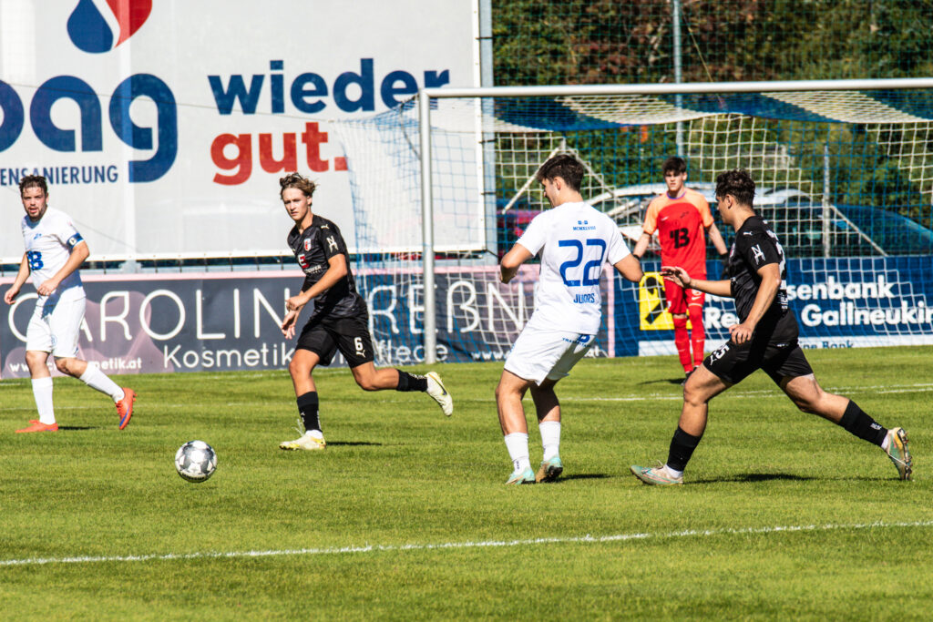 1B – Erneuter Kantersieg für unsere Juniors: Unsere 1B-Mannschaft konnte sich im Vorspiel abermals deutlich durchsetzen und gewann mit 7:0. Verstärkt durch die KM-Spieler Lindner, Gstöttenmair und Hinterreitner zeigte die junge Truppe von Anfang an ihre Klasse und dominierte das Spiel über die gesamte Dauer. Besonders Gstöttenmair und Hinterreitner glänzten mit je drei Treffern. Ein Eigentor der Gäste besiegelte den Endstand.