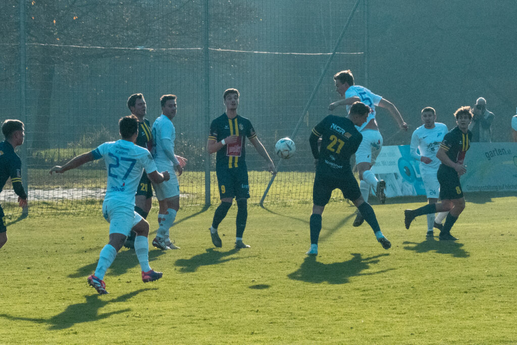Das Spiel gestaltete sich anschließend etwas zerfahren, mit vielen Unterbrechungen, bis zur entscheidenden Szene kurz vor der Halbzeitpause: Ein Eckball rutschte bis an die Strafraumgrenze durch, wo Taner Kalem den Ball übernahm und mit einem wuchtigen Schuss zur 1:0-Führung für den SVG traf. Mit diesem verdienten Vorsprung ging es in die Kabinen.