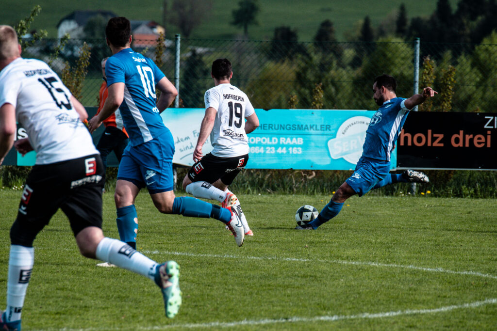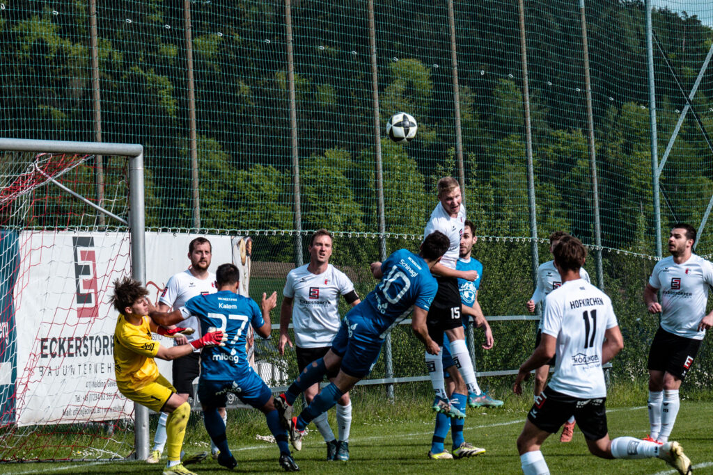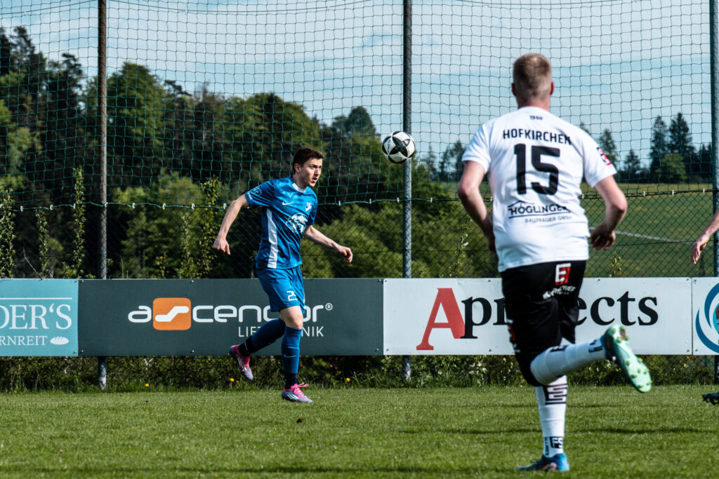 In der 34. Minute dann die längst verdiente Belohnung. Nach einem weiten Ball auf Schmid brachte dieser eine scharfe Hereingabe zur Mitte, die Michael Schinagl nur knapp verpasste. Ein Hofkirchener Verteidiger versuchte zu klären, bugsierte den Ball aber unglücklich ins eigene Tor.