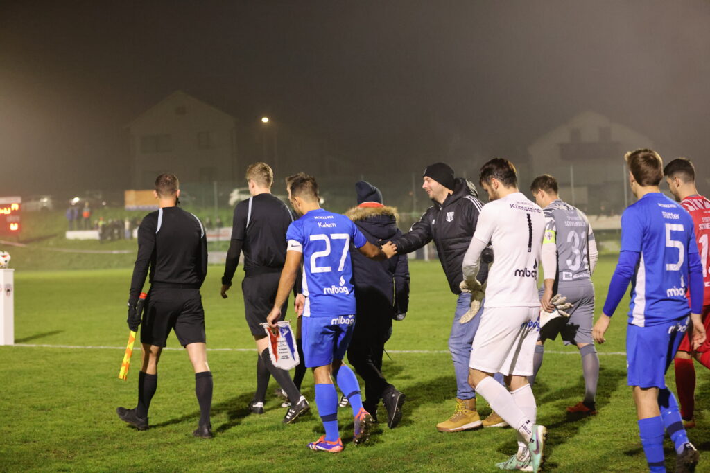 Die Anfangsphase gestaltete sich auf schwierigen Rasen ausgeglichen, wobei auf Seiten des SVG Kalem nach einer präzisen Flanke von Feichtinger knapp das Tor verfehlte. Kurz darauf sah Kalem Gelb, was ihn in der Folge in seiner Zweikampfführung etwas einbremste.