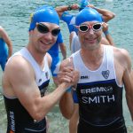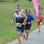 Hochspannung bot der olympische Triathon aus vereinsinterner Sicht. Hier entschieden nur wenige Sekunden um Platz 1 bzw. 2 und Platz 3 der SVG Vereinswertung. Nach starkem Schwimmen und ebenso starken Radsplit noch in Führung gelegen, musste Christoph Kreindl sich noch knapp den heranstürmenden Rainer Peherstorfer geschlagen geben. Letztlich klassierte sich Rainer auf Rang 29 von 327 Teilnehmern und Christoph auf Rang 30 nur um 10 Sekunden dahinter. Noch dramatischer verlief das Battle um Rang 3 der „Vereinsmeisterschaft“. Nach dem Schwimmen war Gerold Breuer noch komfortabel vor Andreas Sigl und Harald Seibert in Führung gelegen. Mit festen Boden unter den Füßen startete Harald Seibert eine fulminante Aufholjagd und konnte Gerold und Andreas noch auf der Radstrecke überholen. (Harald überholte dabei über 200 Triathleten am Rad!) Beim abschließenden Laufsplit kam Andreas, Harald noch gefährlich nahe. Letzterer konnte als 63 der Gesamtwertung schlappe 7 Sekunden vor Andreas, der als 64ter einlief ins Ziel retten. Gerold Breuer büßte zwar einige Plätze nach seinem großartigen Schwimmsplit ein, konnte sich aber dennoch im guten vorderen Drittel klassieren. Mit dieser geschlossenen starken Mannschaftsleistung wurde das SVG Herrenteam Dritter in der Vereinswertung.