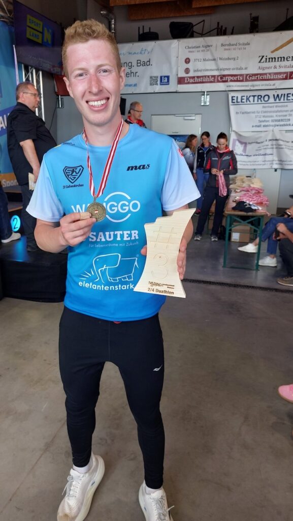 Der Platzsprecher brachte es lautstark auf den Punkt: Es war eine regelrechte „Parade des SV Gallneukirchen“ bei den Österreichischen Duathlon-Staatsmeisterschaften in Maissau (NÖ) über 6 km Laufen, 30 km Radfahren und 3 km Laufen. Und das völlig zurecht – gleich 11 Athlet*innen unseres Vereins standen am Start!
