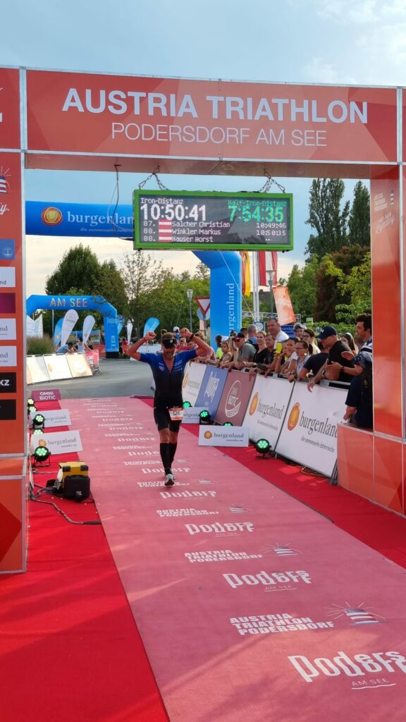 Horst Hauser finishte mit Top Zeit den Austria Triathlon in Podersdorf