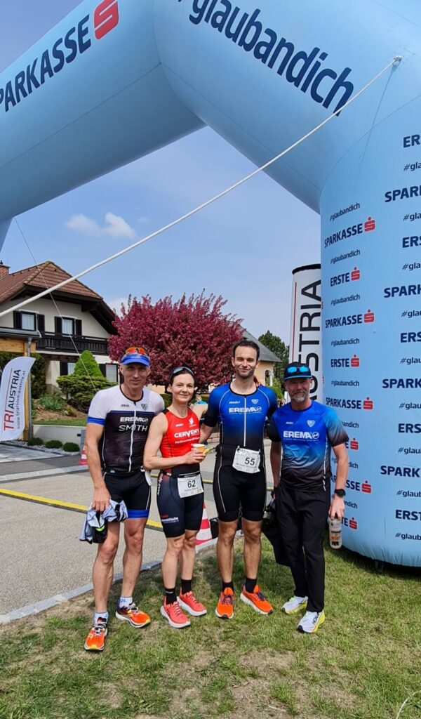 Gleich beim ersten Wettkampf der neuen Triathlon Saison, konnten die SVG Trias die ersten Erfolge verbuchen. So präsentierten sich Gudrun Steiner, Michael Schnellinger, Andreas Sigl und Neuzugang Horst Hauser bereits in sehr guter Form. Allen 4 SVG MultisportlerInnen gelang der Sprung aufs Podium der OÖ Klassen Landesmeisterwertung. Gudrun Steiner sprintete sogar auf Platz 1. ihrer AK der Österreichischen Meisterschaft.