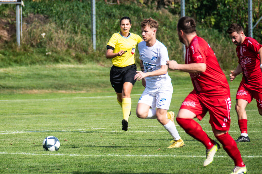 Der SV Gallneukirchen setzte sich am Sonntag im Bezirksderby eindrucksvoll gegen die Union Vorderweißenbach durch und holte drei weitere wichtige Punkte. Kapitän Kalem und Co. legten einen furiosen Start hin und dominierten von Beginn an das Spielgeschehen. Bereits in der 4. Minute wurde der Einsatz belohnt, als Youngster Wolfram Schmid nach einer präzisen Vorlage von Schinagl vom Elfmeterpunkt aus zum 1:0 abschloss.